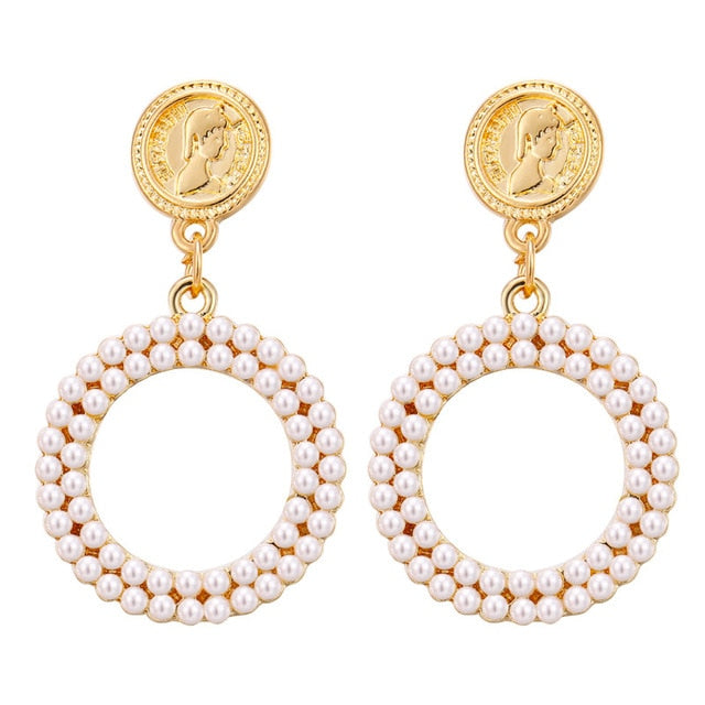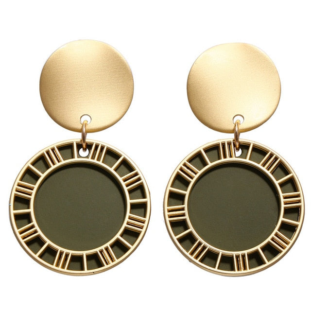Feature: Round Gold Sequin with Geometric Hanging Pendant Design